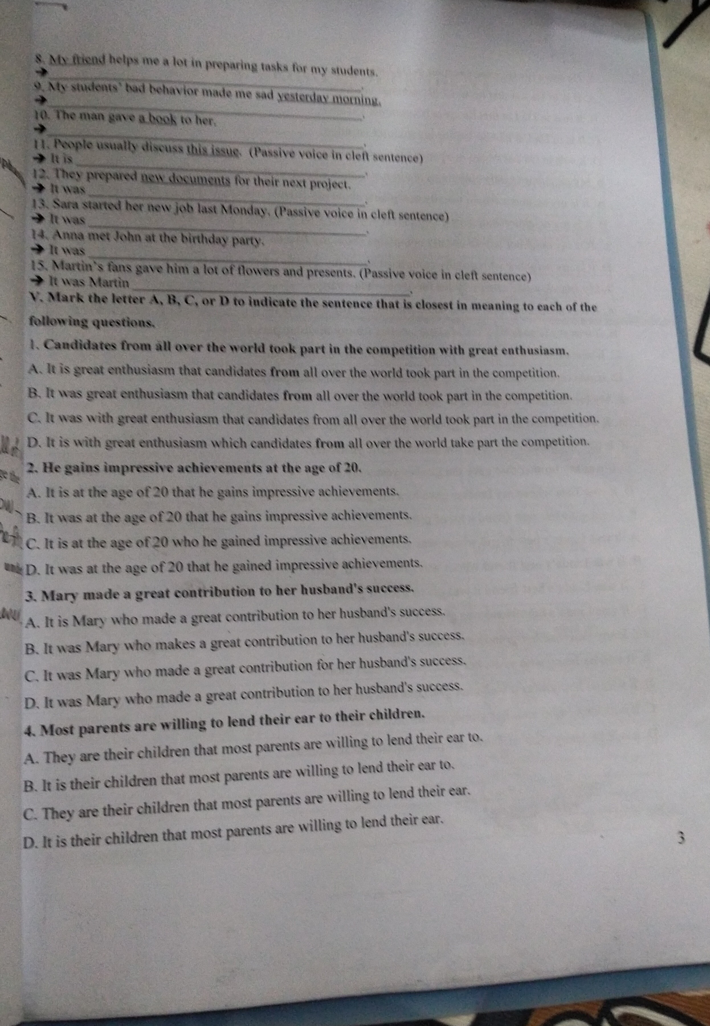10. It was a book that the man gave to her.