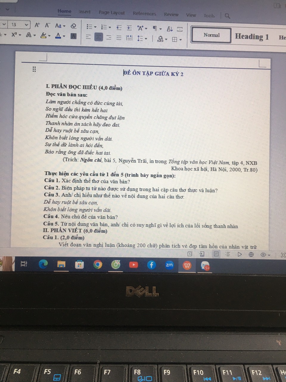 Câu 4. Chủ đề: Bài thơ là một bức tranh tâm lý của người làm quan trong thời loạn lạc, thể hiện sự tự nhận thức về đức cùng tài và sự chán nản với cuộc sống quan trường.