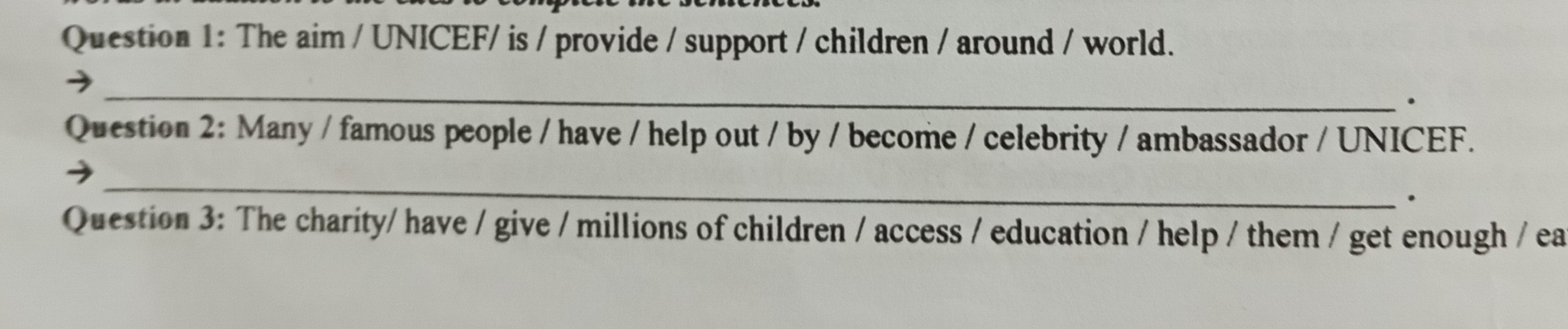 1. The aim of UNICEF is to provide support for children around the world.