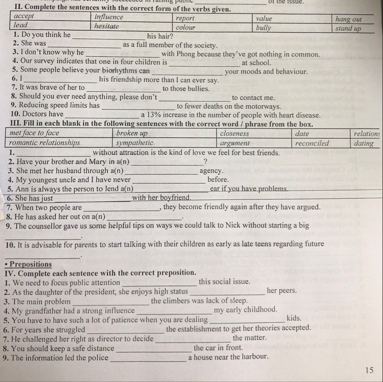 10. It is advisable for parents to start talking with their children as early as late teens regarding future______relations_______
