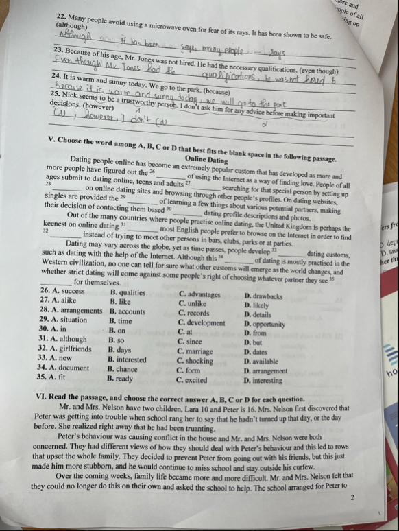 25. Nick seems to be a trustworthy persoh. I don't ask him for any advice before making important decisions. (however)