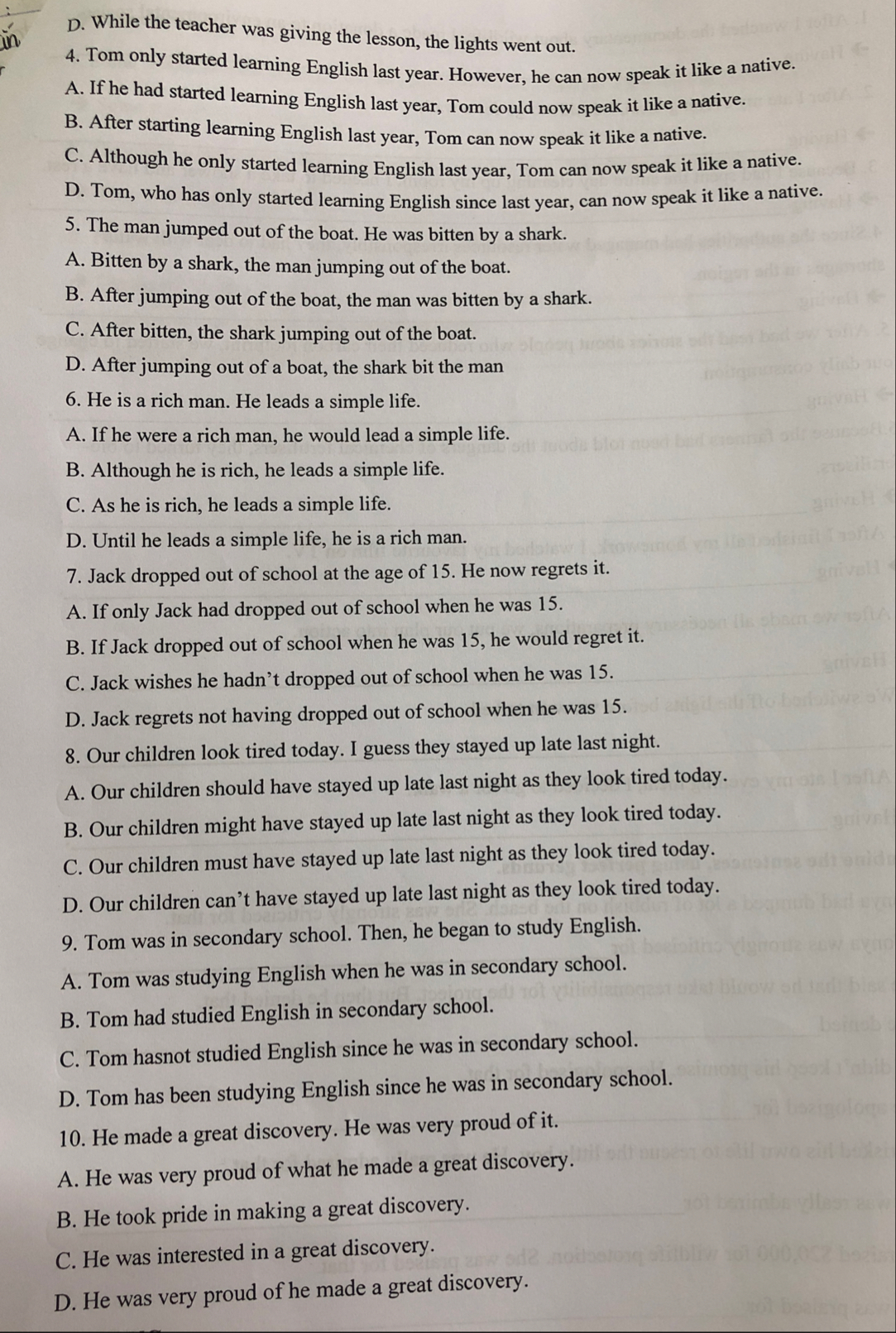7. C. Jack wishes he hadn't dropped out of school when he was 15.