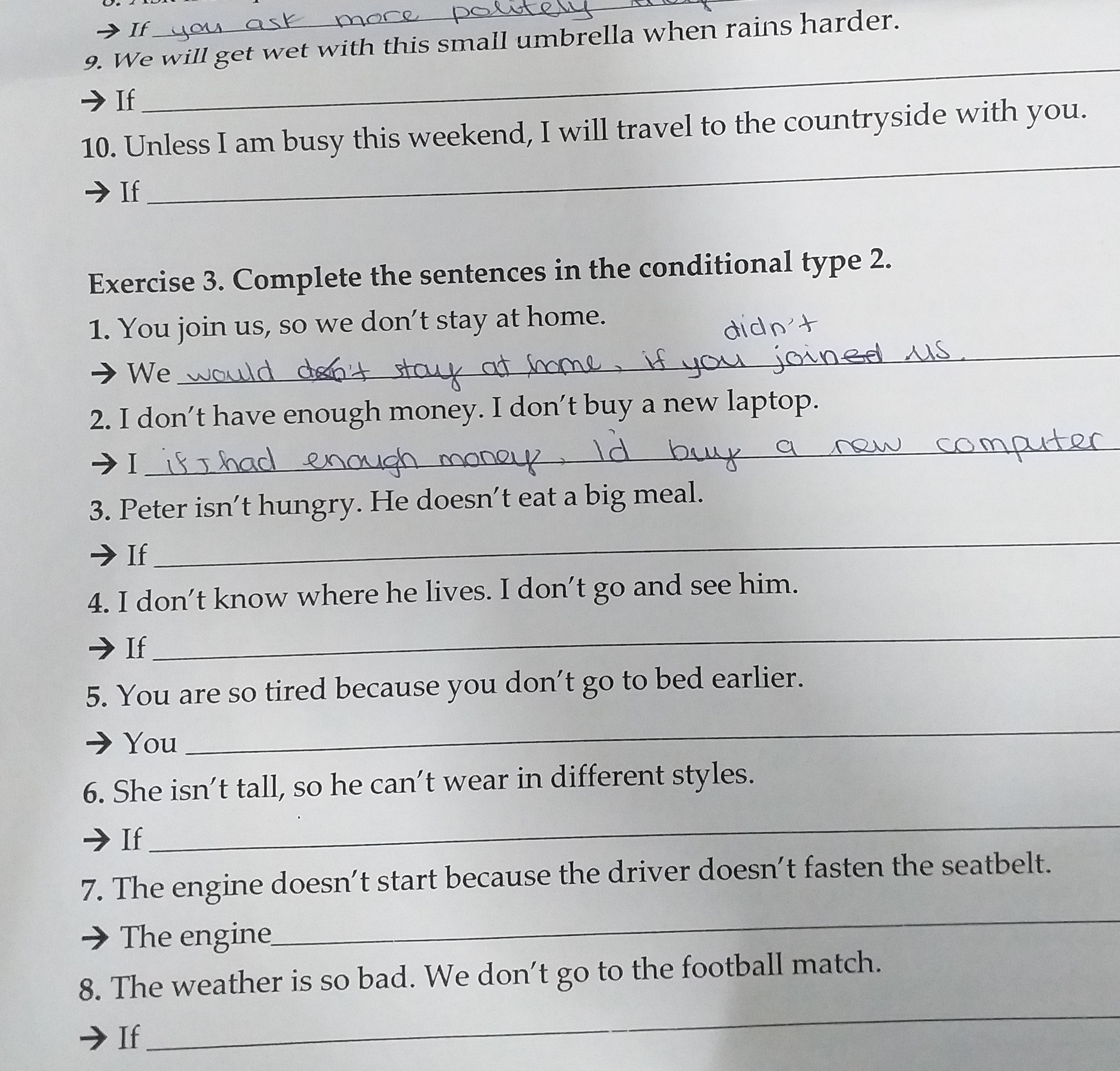9. Nếu trời mưa to hơn, chúng ta sẽ bị ướt chiếc ô nhỏ này.