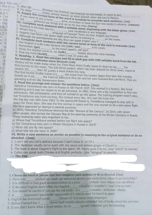 II. Cho dạng đúng của từ trong ngoặc để hoàn thành mỗi câu.