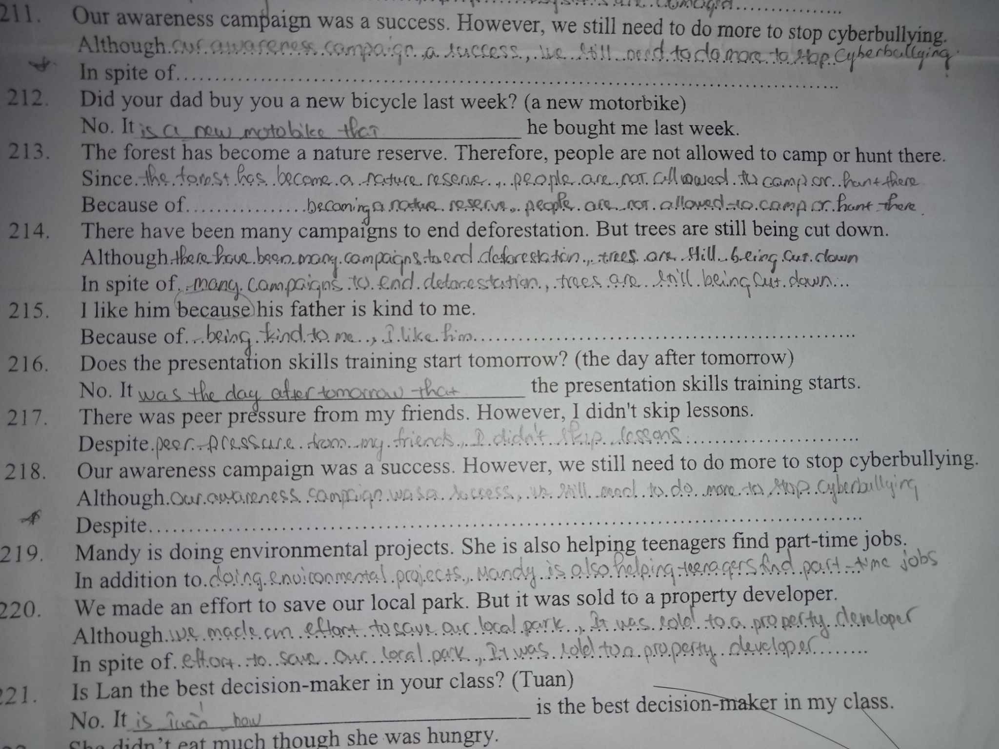 212. Did your dad buy you a new bicycle last week? (a new motorbike)
