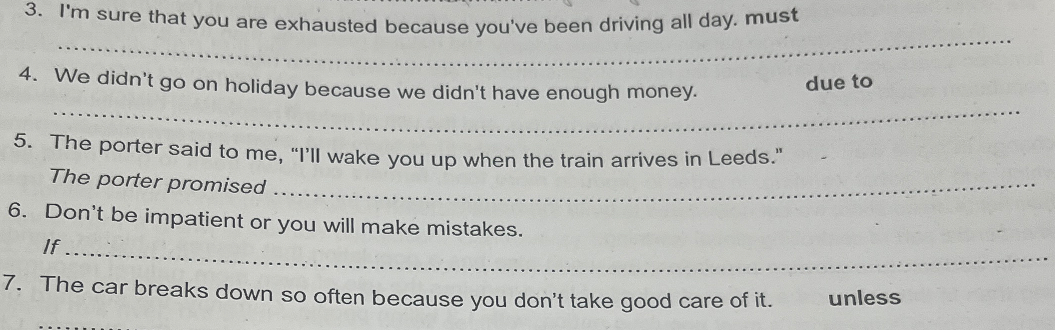 5. The porter promised to wake me up when the train arrived in Leeds.