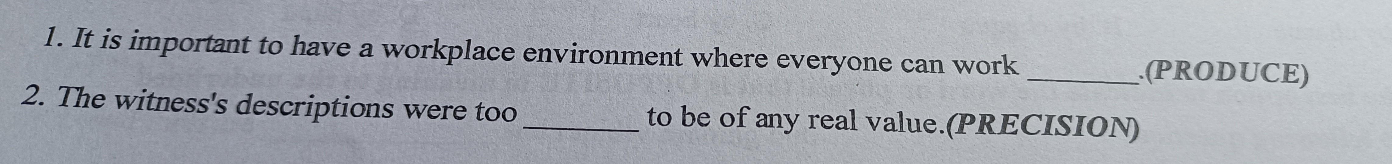 1. It is important to have a workplace environment where everyone can work **productively**. (PRODUCE)