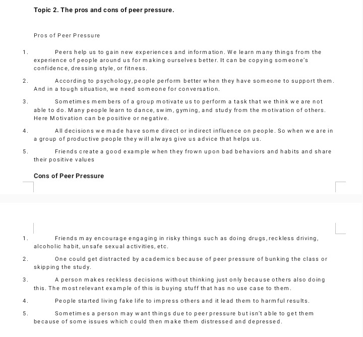 On the other hand, peer pressure can have detrimental consequences. It can lead to engagement in risky behaviors like substance abuse, reckless driving, or unsafe activities. Academic focus may be compromised due to the influence of peers encouraging class skipping or neglecting studies. Individuals may make impulsive purchases or decisions based on what others are doing, leading to regret and financial strain. The desire to fit in can result in living a facade, which can have harmful psychological effects, including stress and depression when unable to meet the expectations set by peers.