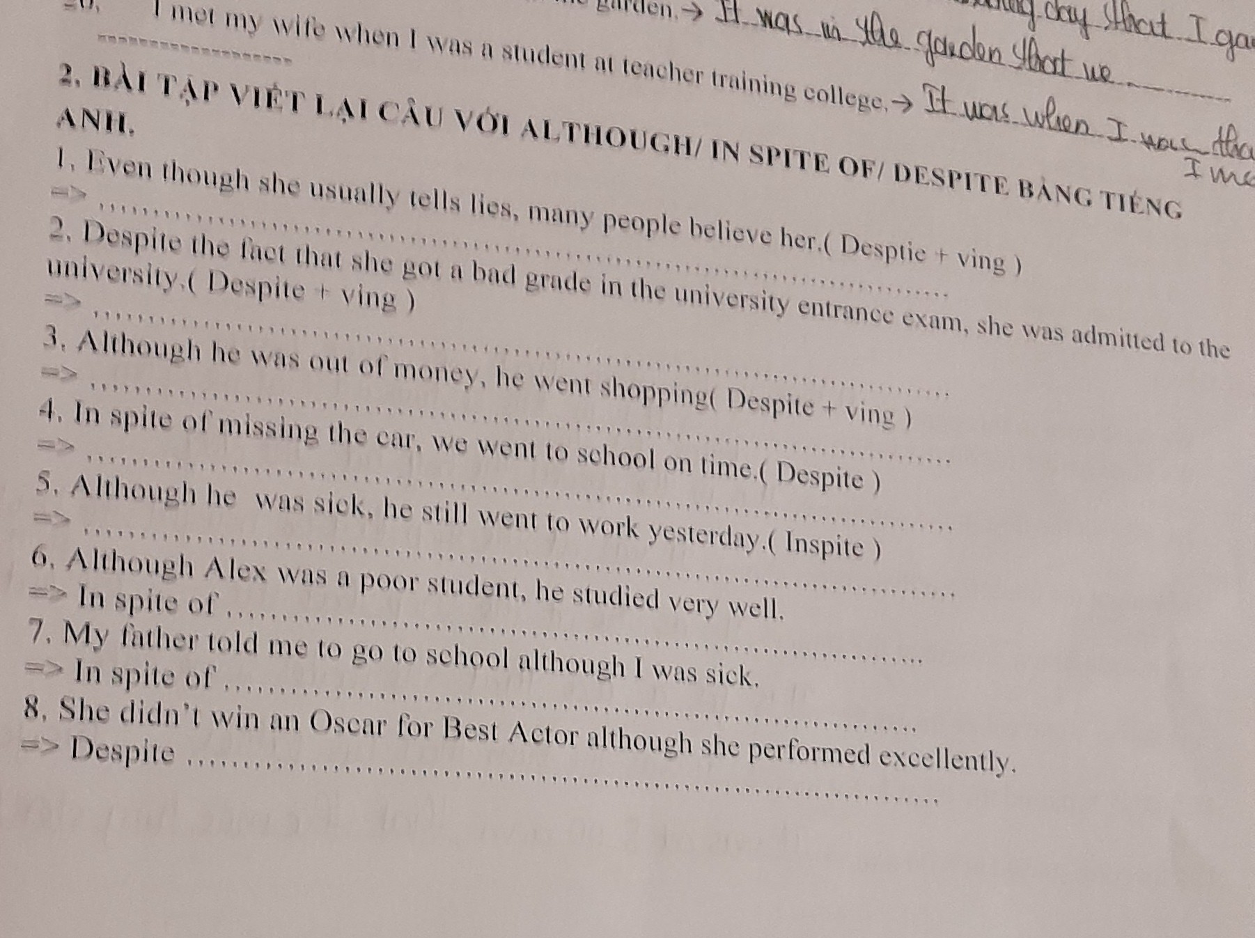 2. Despite getting a bad grade in the university entrance exam, she was admitted to the university.