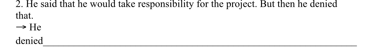 Anh ấy phủ nhận việc đã nói rằng anh ấy sẽ chịu trách nhiệm về dự án.