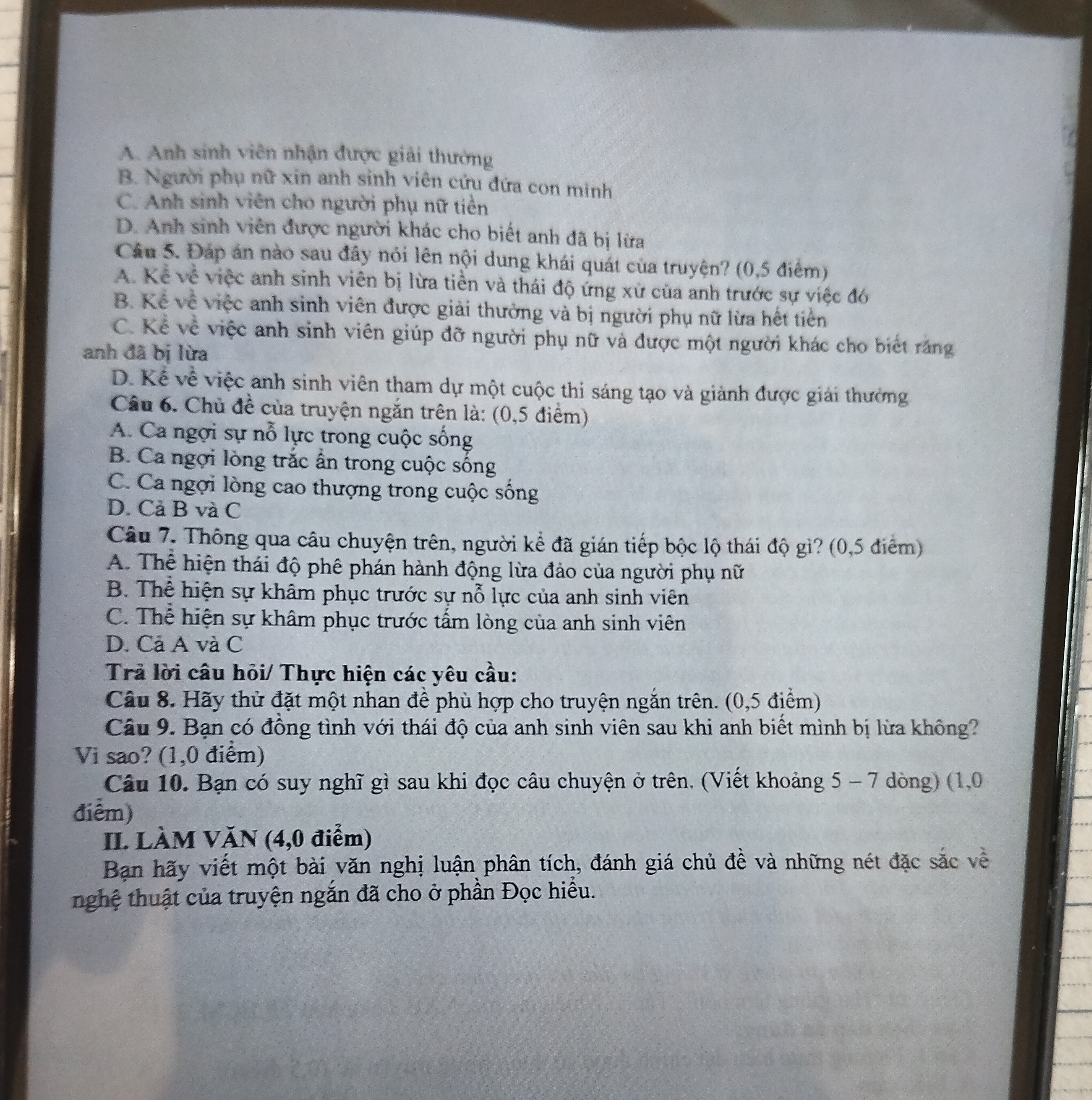 Câu 8. Tấm lòng cao thượng; Được và mất; Cho đi là còn mãi; v.v…