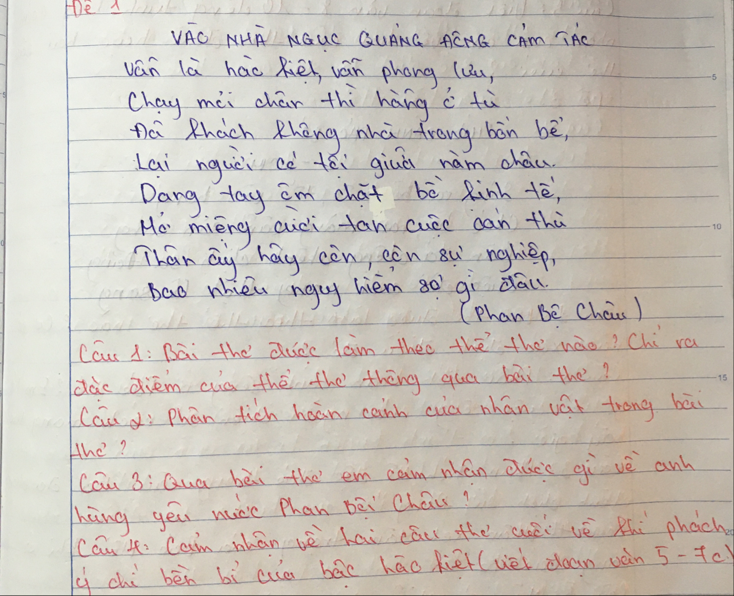 Câu 3: Đây là một người có ý chí lạc quan, niềm tin không lay chuyển vào sự nghiệp cứu nước đầy gian nan thử thách chất chồng. Tấm lòng son sắt, tinh thần lạc quan ấy bắt nguồn từ lòng yêu nước mãnh liệt đã hun đúc nên bản lĩnh kiên cường trước sau không hề chùn bước của Phan Bội Châu