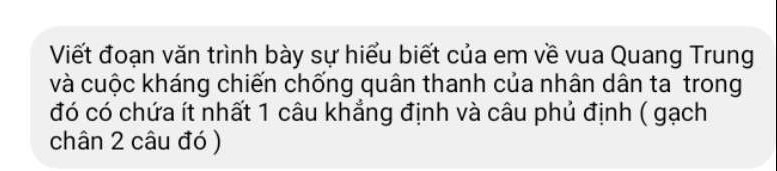 - Câu phủ định: Nổi bật trong trận đánh là hình ảnh Quang Trung không sợ nguy hiểm “cưỡi voi đốc thúc, mặc áo bào đỏ, mặt sạm đen khói súng.”