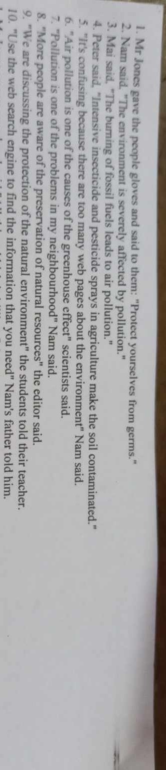 9. The students told their teacher that they were discussing the protection of the natural environment.