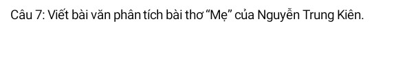 Bài thơ "Mẹ" của Đỗ Trung Kiên là một tác phẩm thể hiện tình yêu và biết ơn sâu sắc của tác giả dành cho người mẹ. Đọc bài thơ, tôi cảm nhận được sự tình cảm chân thành và sự tôn trọng cao độ dành cho người mẹ, người đã hy sinh và dành trọn tình yêu thương cho con.