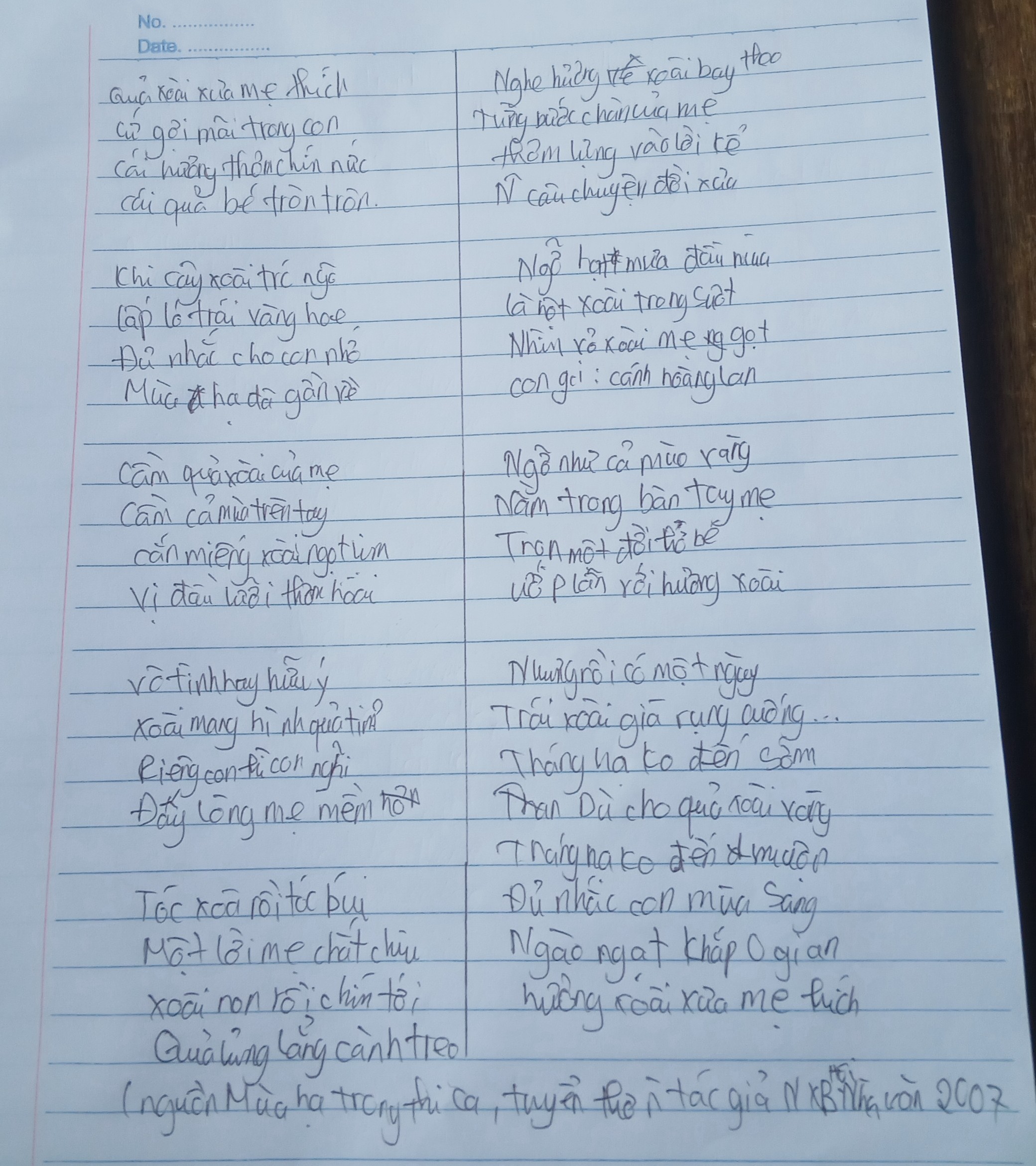 Trong kho tàng thi ca Việt Nam từ xưa đến nay có rất nhiều bài hay và xúc động viết về mẹ, trong đó không thể không kể đến bài “Về mùa xoài mẹ thích” của Thanh Nguyên. Bài thơ mở đầu từ hình ảnh mộc mạc, thân thương của “quả xoài xưa Mẹ thích” với hương thơm chín nức, quả bé tròn tròn, ngọt lịm, xoài mang hình quả tim, hột xoài trong suốt - hạt mưa đầu mùa, vỏ xoài - cảnh hoàng lan, … Tất cả những hình ảnh ấy được hiện lên qua sự hoài niệm ngọt ngào của người con. Những gì thuộc về mẹ là một vùng kí ức ngọt ngào, thiêng liêng đối với tác giả. Hình ảnh người mẹ hiền hậu, dịu dàng, lam lũ cả đời, chắt chiu khó nhọc vì con và đặc biệt là rất gần gũi, thương yêu con cái. Điều đó được tác giả thể hiện qua những từ ngữ, hình ảnh như: “xoài mang hình quả tim - đấy lòng Mẹ ngọt mềm”, “Nghe hương xoài bay theo/ từng bước chân của Mẹ/ thơm lựng vào lời kể/ những câu chuyện đời xưa ”.... Qua việc hồi tưởng về những kí ức gắn liền với cây xoài của mẹ, tác giả thể hiện sự yêu thương, kính trọng dành cho người mẹ của mình và cả những tiếc nuối, hụt hẫng, buồn bã trước sự ra đi của mẹ. Từ dó gửi gắm cho chúng ta thông điệp quý giá: Kí ức ngọt ngào, quý giá về những người thân yêu có thể gắn liền với những điều thật giản đị, gần gũi, nhỏ bé....