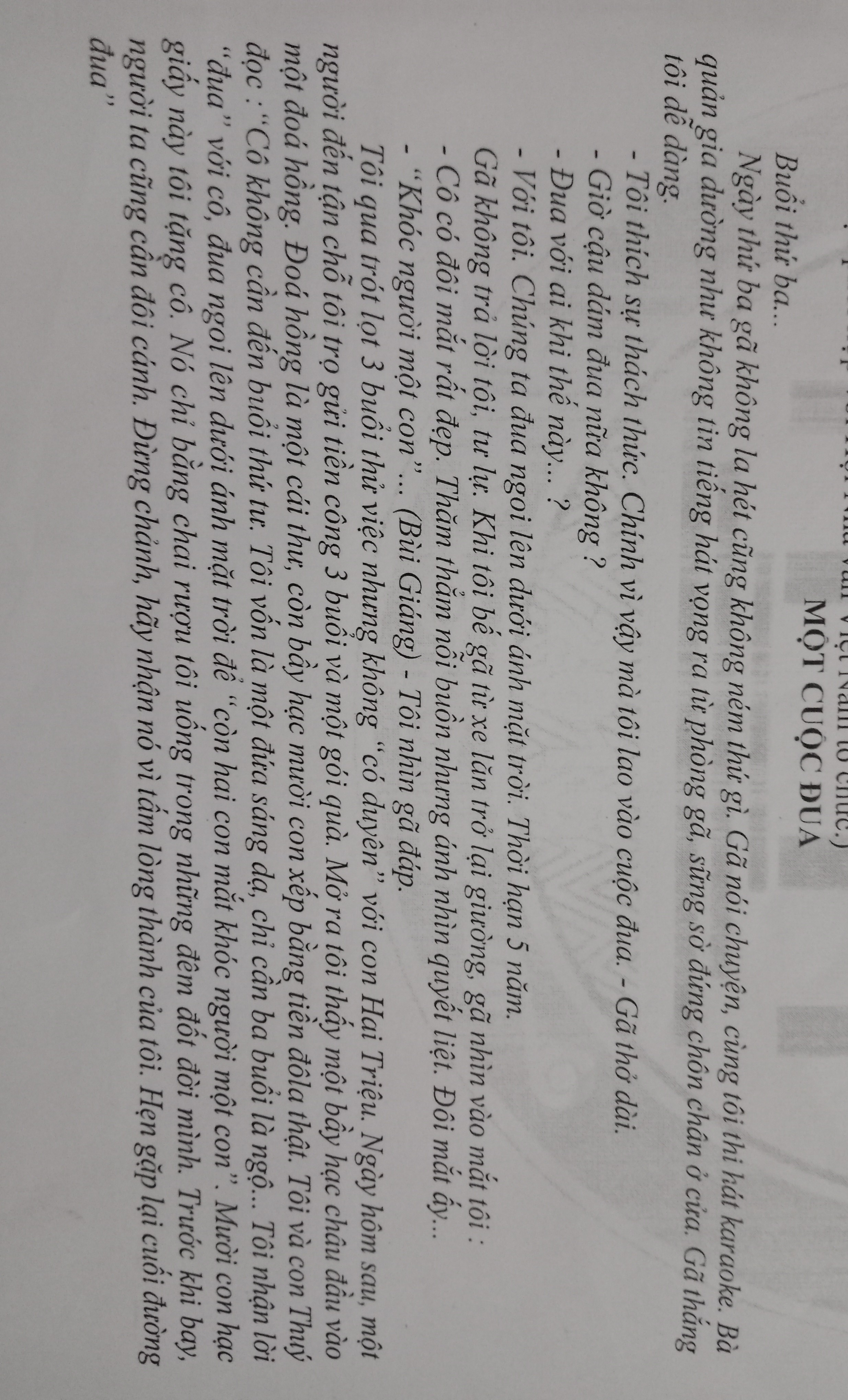 cục cứt bt điDưới đây là dàn ý chi tiết cho truyện ngắn "Một cuộc đua":