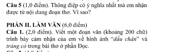Câu 5: Thông điệp có ý nghĩa nhất từ nội dung đoạn thơ