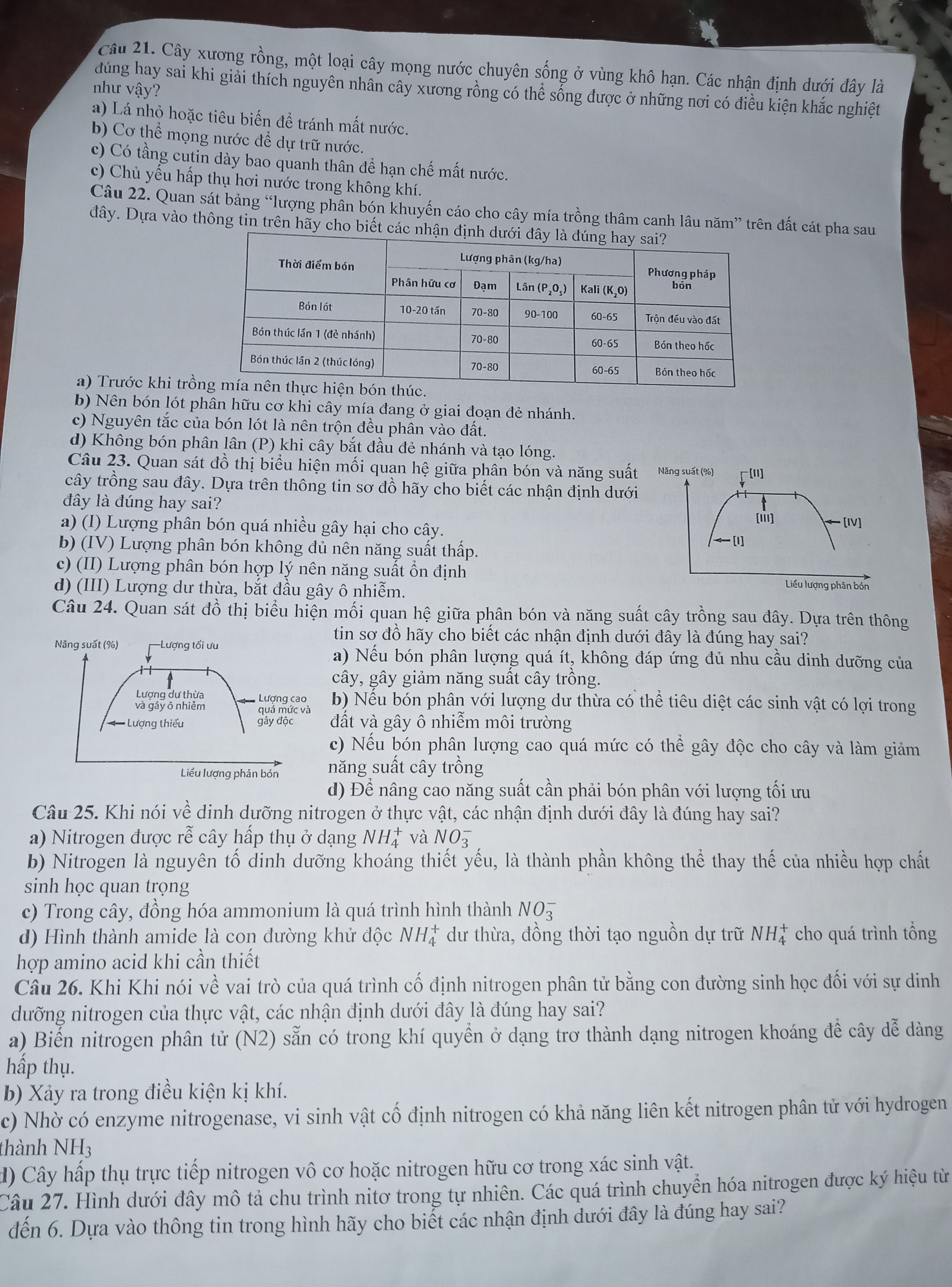 d, sai vì cây không thể hấp thụ trực tiếp nito vô cơ do nito vô cơ tồn tại ở dạng liên kết ba bền vững.