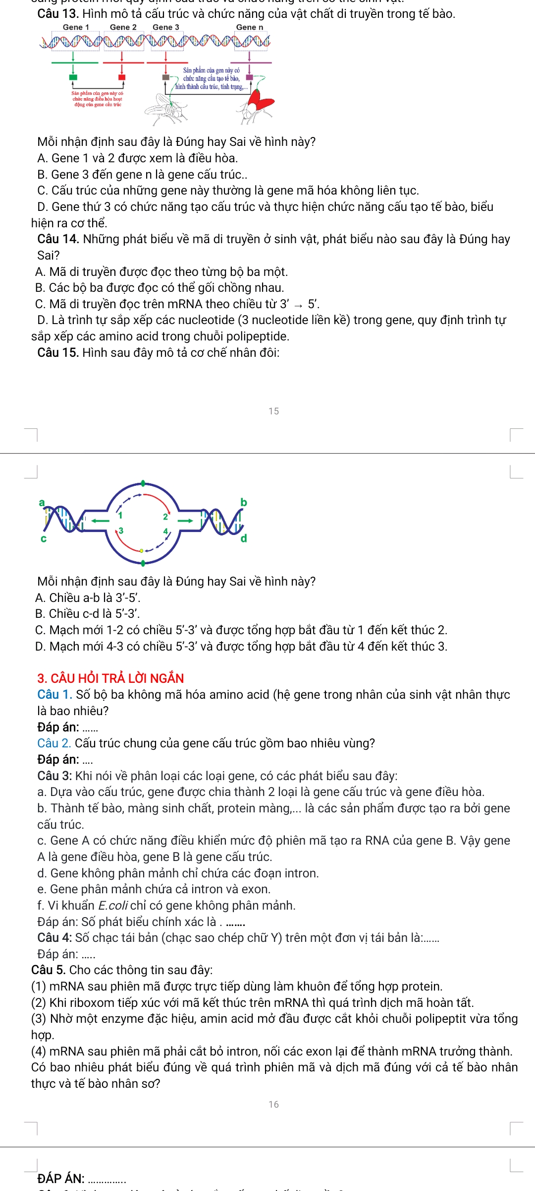 D. Đúng - Gene thứ 3 có chức năng tạo cấu trúc và thực hiện chức năng cấu tạo tế bào, biểu hiện ra cơ thể.