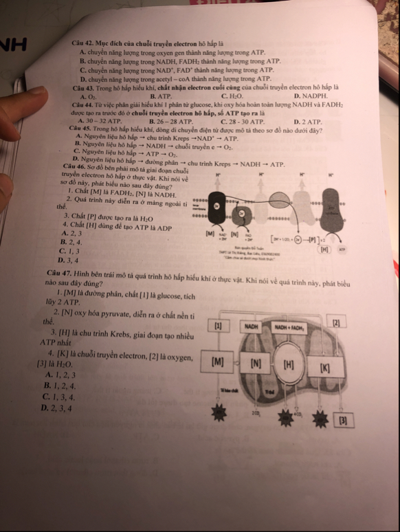 3.sai . giai đoạn tạo nhiều $ATP$ nhất là chuỗi chuyền electron hô hấp