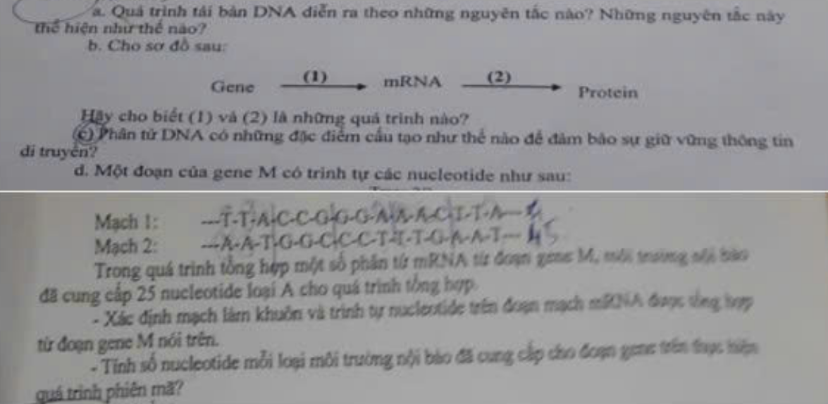 Mạch làm khuôn để tổng hợp mRNA là mạch 1 (mạch mã gốc). Trình tự nucleotide trên đoạn mRNA được tổng hợp từ đoạn gene M là: