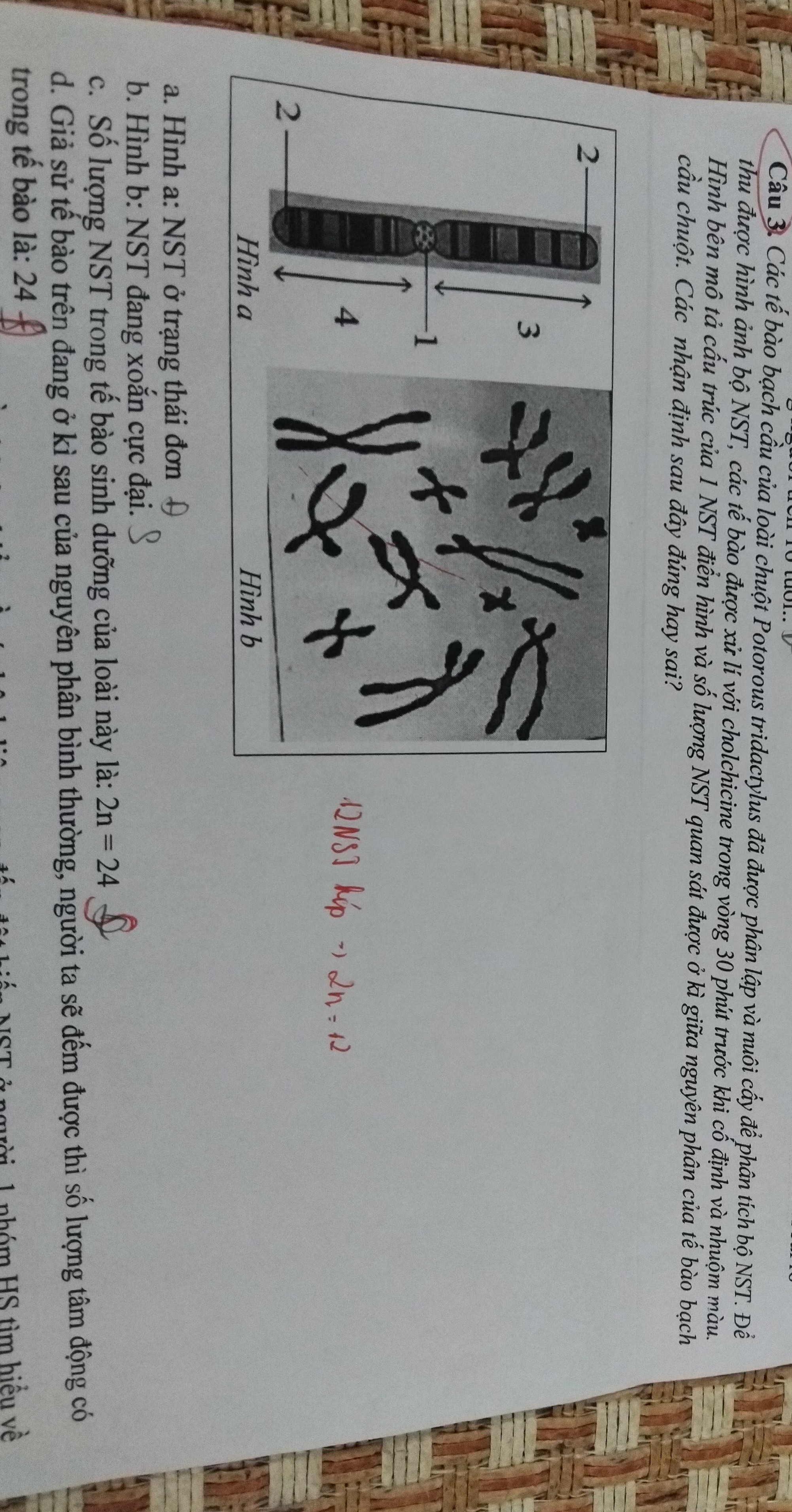 b, đúng : Vì NST đóng xoắn cực đại ở kì giữa nguyên phân