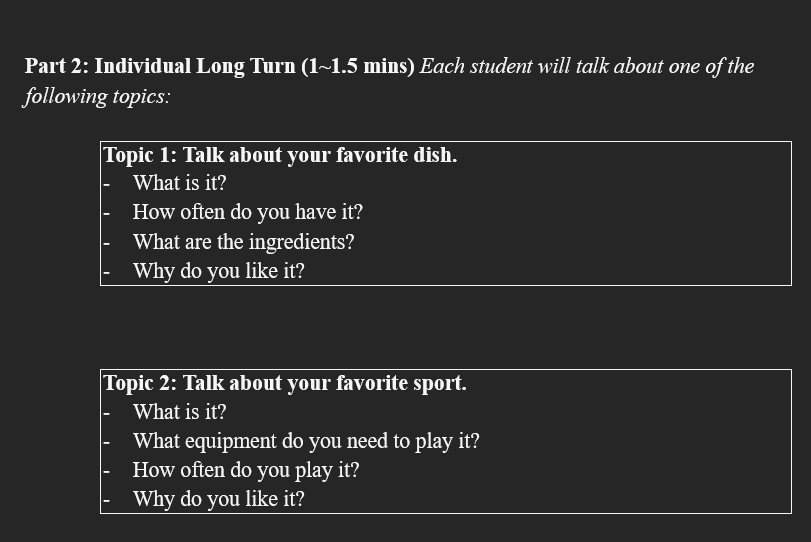 Topic 1: Talk about your favorite dish