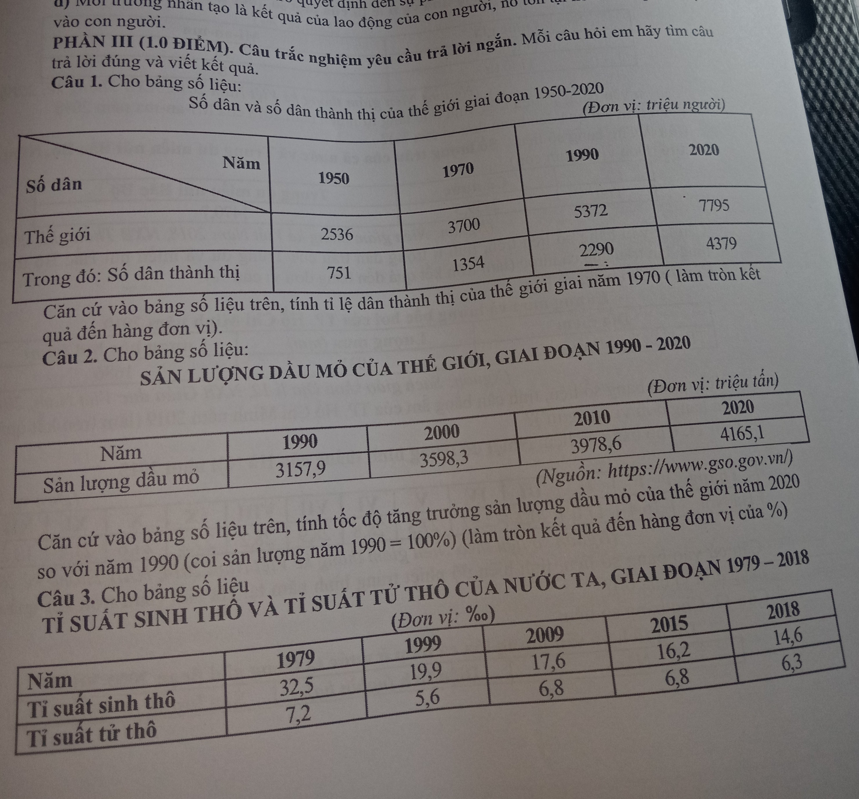 Câu 2: Tốc độ tăng trưởng sản lượng dầu mỏ của thế giới năm 2020 so với năm 1990 là: