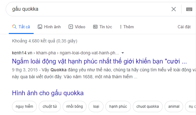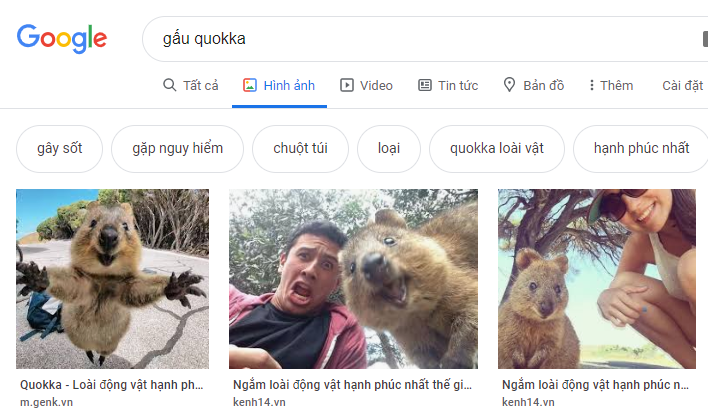 1. Để tìm kiếm hình ảnh hoặc video bằng máy tìm kiếm Google, sau khi truy cập trang web www.google.com.vn, gõ từ khóa (ví dụ gấu quokka) vào ô tìm kiếm để tìm tất cả thông tin có liên quan đến từ khóa.