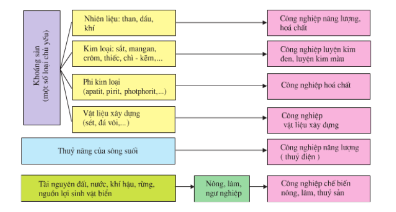 - Tài nguyên thiên nhiên nước ta đa dạng, tạo cơ sở để phát triển cơ cấu công nghiệp đa ngành.