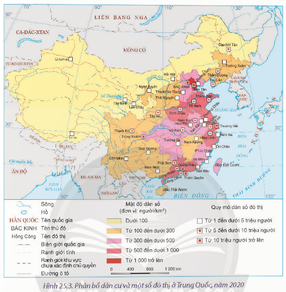 1. Nhận xét đặc điểm phân bố dân cư ở Trung Quốc, năm 2020.