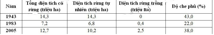 Câu 38: Cho bảng số liệu: