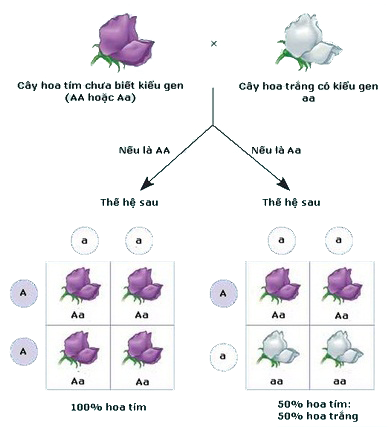+ Nếu kết quả của phép lai là đồng tính thì cá thể mang tính trạng trội có kiểu gen đồng hợp (AA).