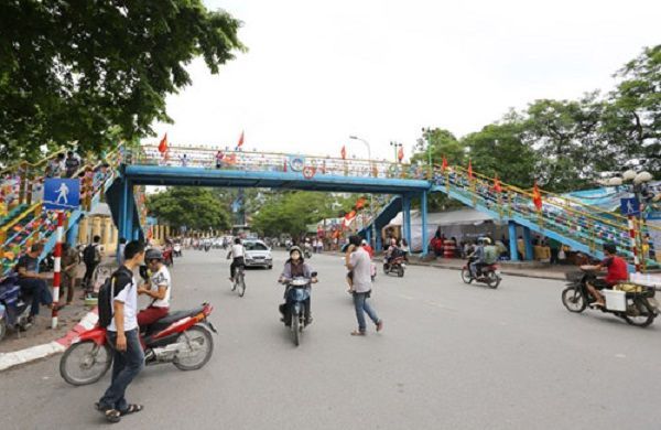 Cầu đi bộ tại NEU là điểm nhấn trong trường