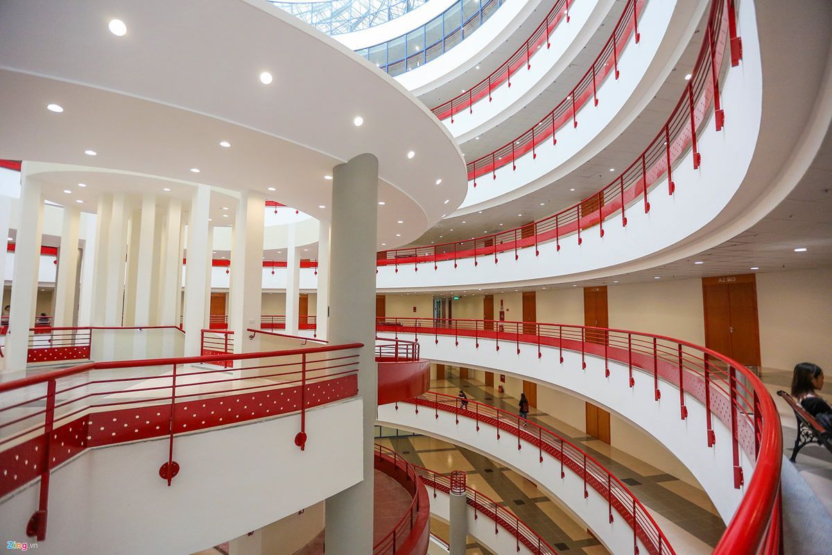 Thêm vào đó, thư viện Phạm Văn Đồng của nhà trường trang bị đến sinh viên vô số sách quý từ nhiều chuyên ngành giúp sinh viên được thoải mái nghiên cứu học tập. Các bạn nghiện check-in cũng bị thu hút vì sự sang chảnh và siêu hiện đại của thư viện trường.