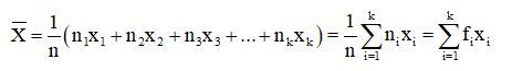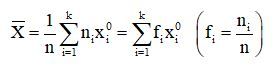 - Nếu dấu X có bảng phân phối ghép lớp, có k lớp với giá trị trung tâm lần lượt là: x1, x2, x3, … xn và các tần số tương ứng là: n1; n2; n3; …; nk với n1 + n2 + n3 + … + nk = n thì số trung bình là: