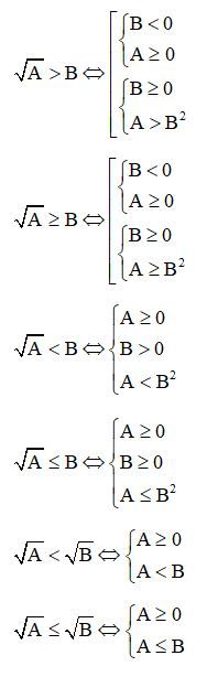 4) Các công thức về phương trình và bất phương trình chứa dấu căn bậc hai