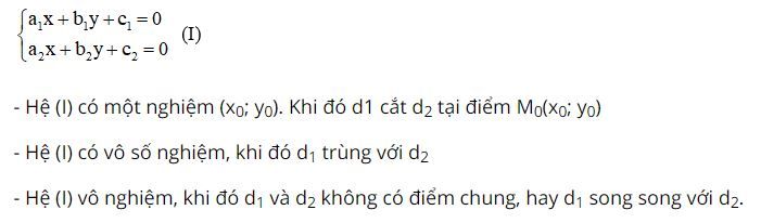 + Cách 2. Giao điểm của hai đường thẳng d1 và d2 (nếu có) là nghiệm của hệ phương trình