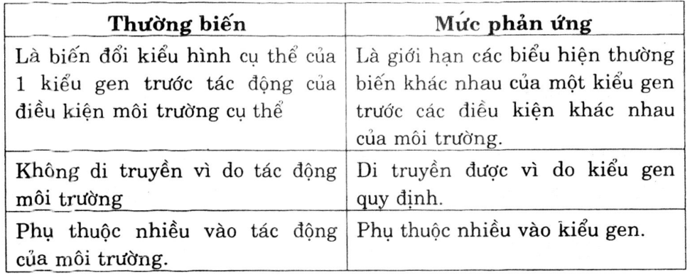 2. Khác nhau giữa thường biến và mức phản ứng: