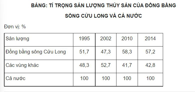 - Cơ cấu sản lượng thủy sản của Đồng bằng sông Cửu Long so với cả nước:
