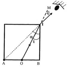 Một ly đựng đầy nước hình trụ cao 20 cm có đường kính 20 cm. Một người đặt mắt gần miệng ly nhìn theo phương AM thì vừa vặn thấy tâm O của đáy ly.<br><img src="https://minio.ftech.ai/fedu/62bea9f4e859b...