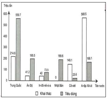- Sản lượng dầu mỏ khai thác và tiêu dùng của một số nước châu Á có sự khác nhau.