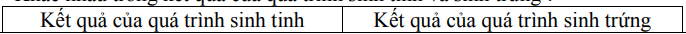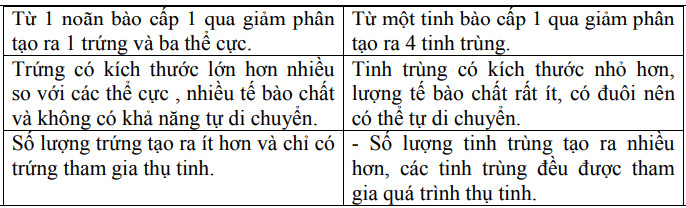 - Khác nhau trong kết quả của quá trình sinh tinh và sinh trứng: