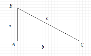 Cho tam giác $\displaystyle ABC$ vuông tại $\displaystyle A$. Có độ dài cạnh $\displaystyle AB\ =\ a,\ AC\ =\ b,\ BC\ =\ c$. Áp dụng định lý Pytago, công thức về mối liên hệ giữa các cạnh trong tam giác được biểu diễn như sau: