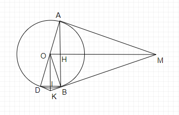 Mà $\displaystyle \widehat{OBK} =90^{o}$(MK là tiếp tuyến của (O) tại B