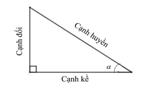 Trong tam giác vuông, xét góc $\displaystyle \alpha $, có các cạnh đối, cạnh kề, cạnh huyền.