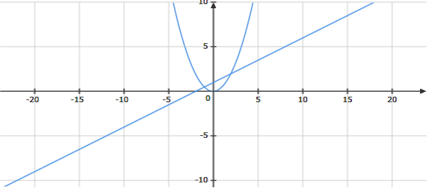 $\displaystyle \frac{x^{2}}{2} =\frac{1}{2} x+1\Leftrightarrow x^{2} -x-2=0\Leftrightarrow ( x+ 1)( x-2) =0\Leftrightarrow \left[ \begin{array}{l l}