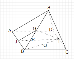 a, Xét $\displaystyle \vartriangle ABS$ có: J là trung điểm của AB, G là trung điểm của BS