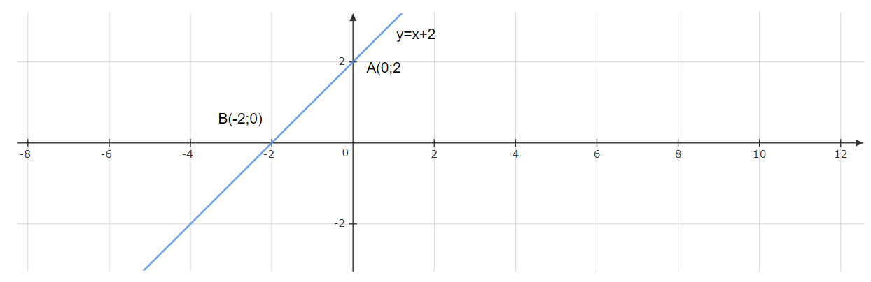 b) Với m = 1, ta có: $\displaystyle y\ =\ ( 2.1\ –\ 1) \ x\ +\ 2=x+2$ có đồ thị là đường thẳng đi qua: A(0;2), B(-2;0)